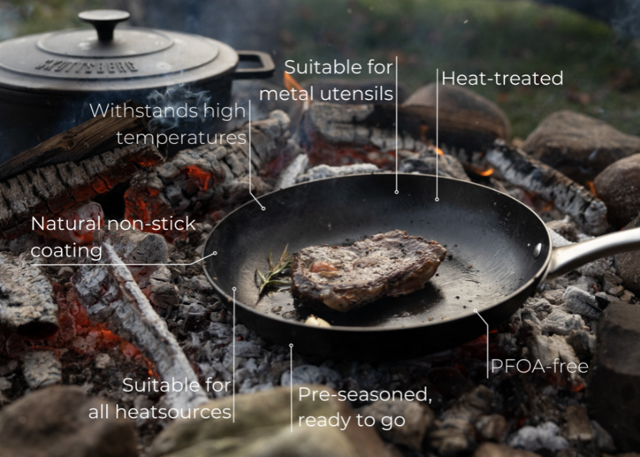 With Skottsberg, you cook PFOA-free. Our cast iron pans have no unhealthy synthetic non-stick coating. With Skottsberg, you, therefore, choose a durable product with a lifetime of cooking pleasure.